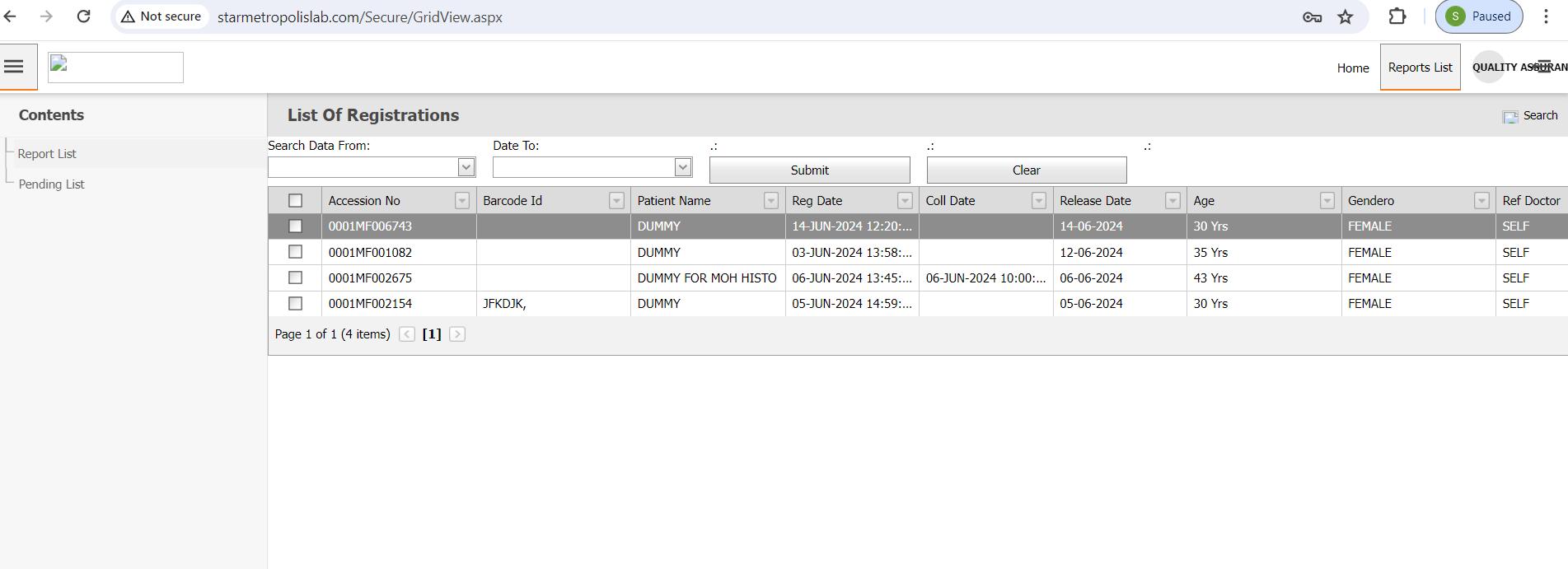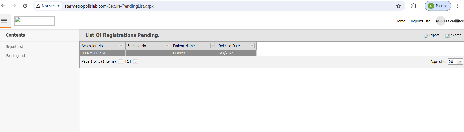 Click on the 'Pending List' to view reports that are awaiting completion.
