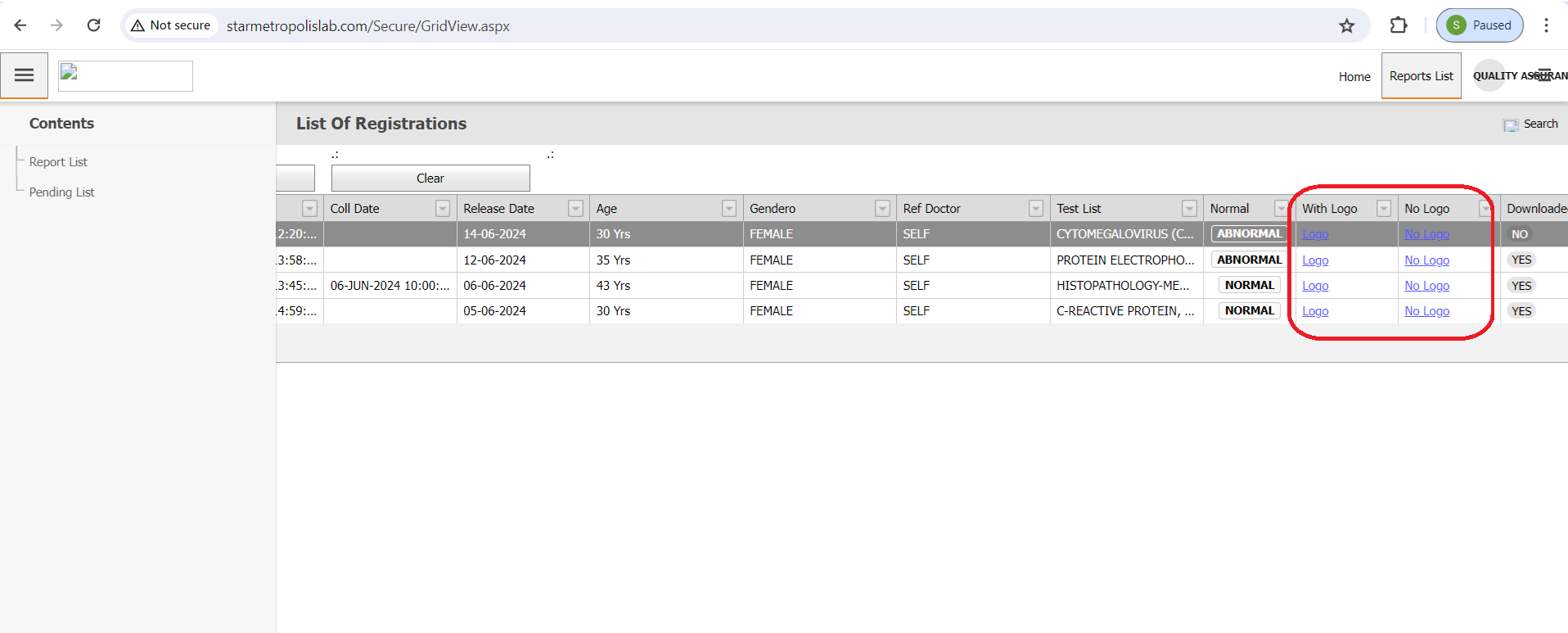 Locate the report you wish to download. Click on the 'Logo' icon or button associated with the report. The report will be downloaded to your device in PDF format.